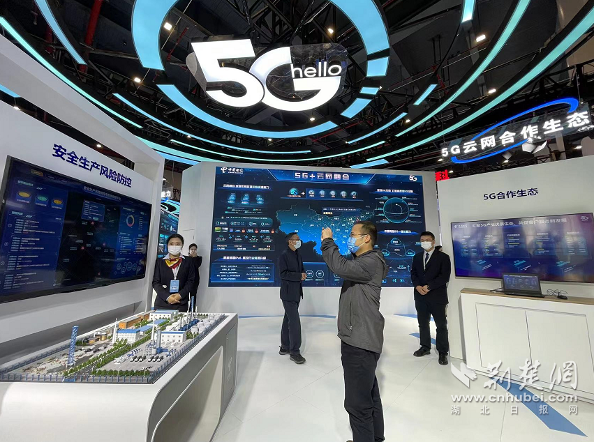 荆楚网(湖北日报网)讯(记者 郑一鸣 通讯员 许国胜)11月19日,2021中国5G+工业互联网大会在武汉光谷科技会展中心举行,中国电信展厅围绕“数智赋能 翼启扬帆”主题,在5G云网核心能力、5G+工业互联网应用实践、5G云网合作生态三大板块,全面展示了5G、天翼云、安全、行业应用及平台等云网融合综合能力与实践成果,现场吸引了诸多媒体关注。