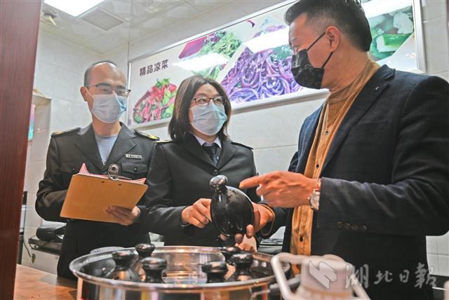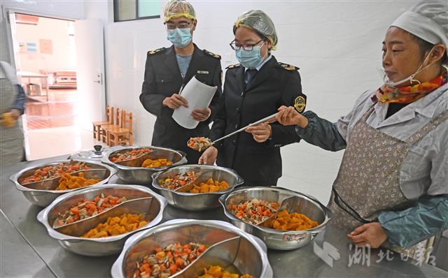 11月15日,宜昌市猇亭区市场监管局工作人员来对辖区餐馆与学校食堂进行“互联网+明厨亮灶”的检查。“互联网+明厨亮灶”建设是今年猇亭区为群众办实事重要工作。目前,全区学校、养老机构、大型企业食堂,红白喜事馆,夜市及网络外卖销量高的餐饮门店等重点部位、重点产所100余家餐饮店全部安装智能监管摄像头,将后厨从过去的幕后推到前台,从过去的‘闲人免进’到‘晒’到网上,监管人员通过APP可实时监控,就餐群众可以通过扫餐桌上的二维码,直接观看后厨的环境卫生、美食制作过程。(湖北日报全媒记者 刘曙松 通讯员 胡梦潇 裴潇 摄)