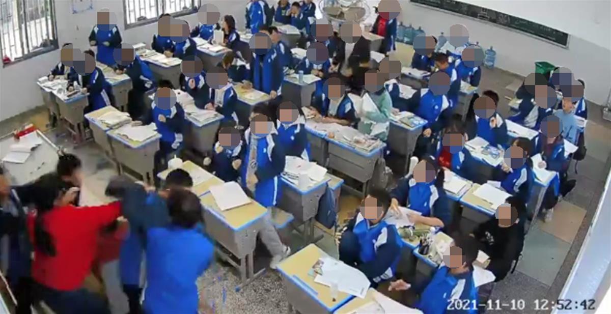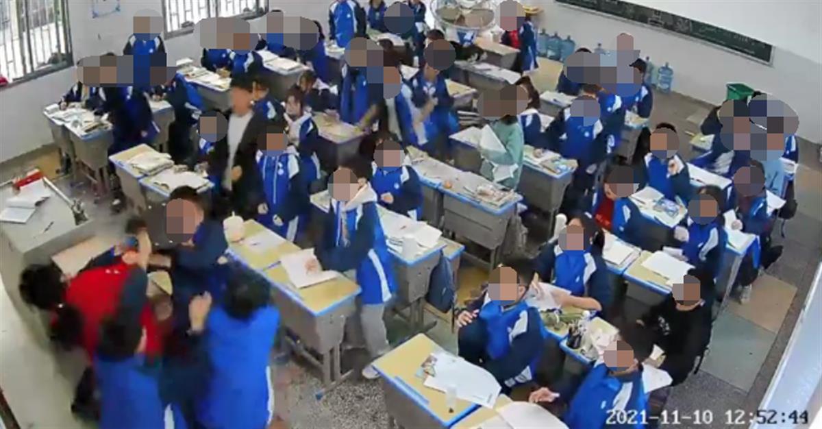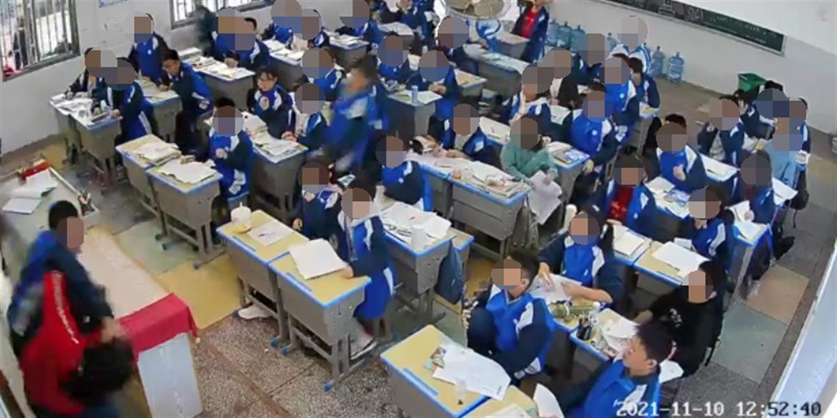 女老师正在讲课时,一名男学生突然冲上讲台,连续对女老师挥拳击打,后被其他同学按倒在地。11月10日,湖南省邵东市两市镇二中发生上述一幕。19日,邵东市网信办工作人员表示,此事正在处理中。