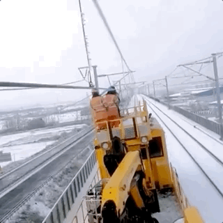 一下一下敲击着接触网,人工除冰