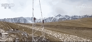 将输电塔搭建在帕米尔高原雪山之巅