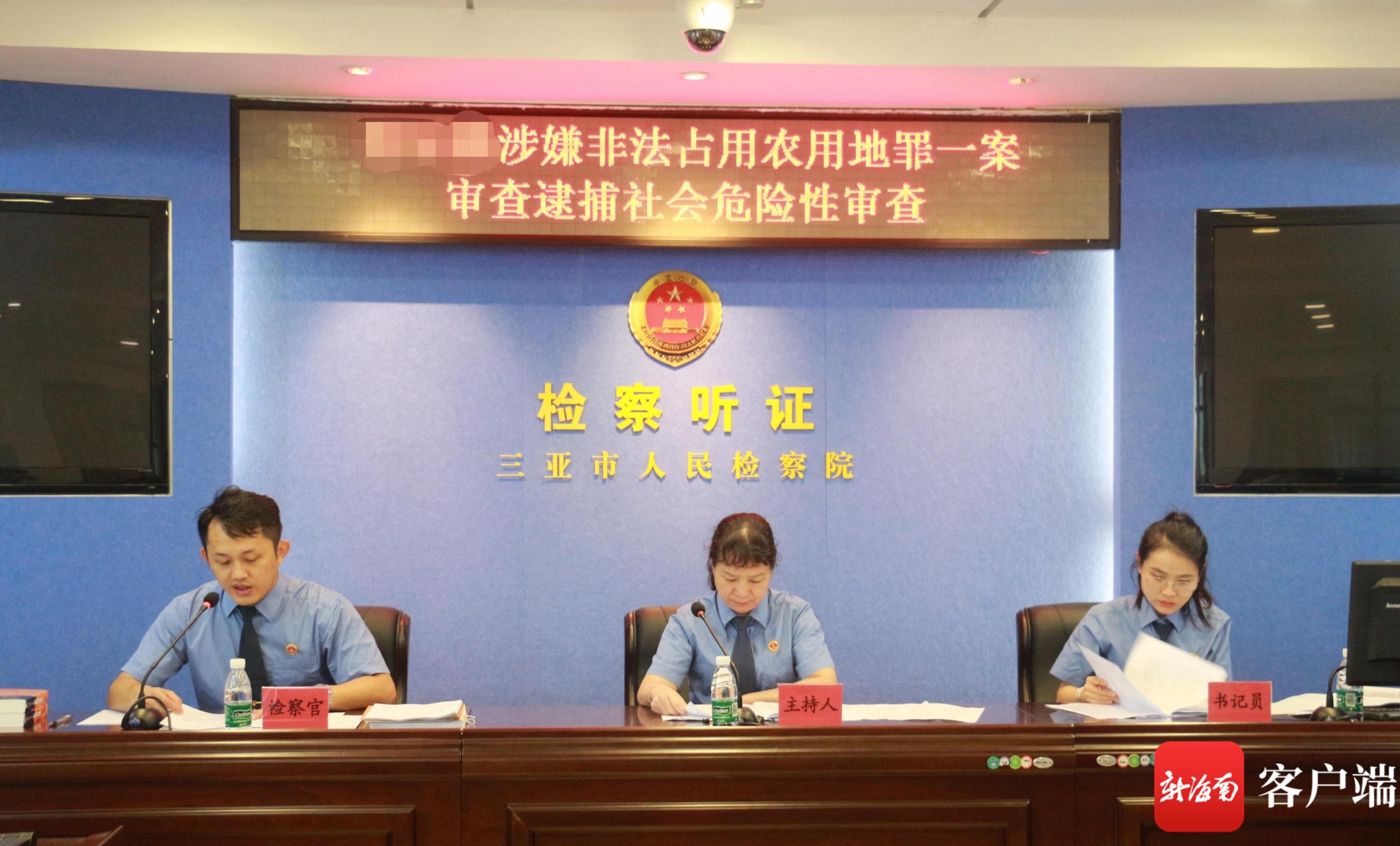 新海南客户端、南海网、南国都市报11月20日消息(记者利声富 通讯员雷宗儒 许重阳)18日,三亚市人民检察院首次以听证形式对一起涉嫌非法占用农用地罪的审查逮捕案件进行审查。结合听证评议意见,三亚检察院对犯罪嫌疑人何某某依法作出不批准逮捕决定,并要求有关单位和个人督促何某某采取积极行动恢复生态。