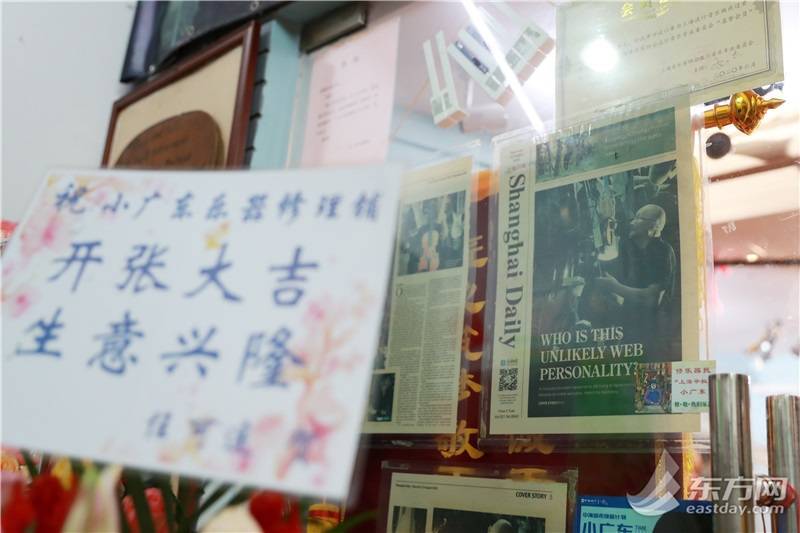 小广东乐器修理铺的老板冯顺成,是东东的老朋友了,东方网曾多次报道这位“乐坛扫地僧”,他做过那英的伴奏,连杜德伟都托人慕名而来修琴,他的经历甚至名扬海外,他的店被外国导游推荐为来沪旅游必参观的“景点”,王家卫、贾樟柯派出摄制组蹲点拍摄他的纪录片……久而久之,这位人称“小广东”的上海爷叔,成了肇周路上的“顶流”。