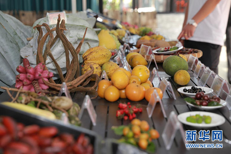 琼海市“世界热带水果之窗”展示厅内的各种新奇特热带水果。