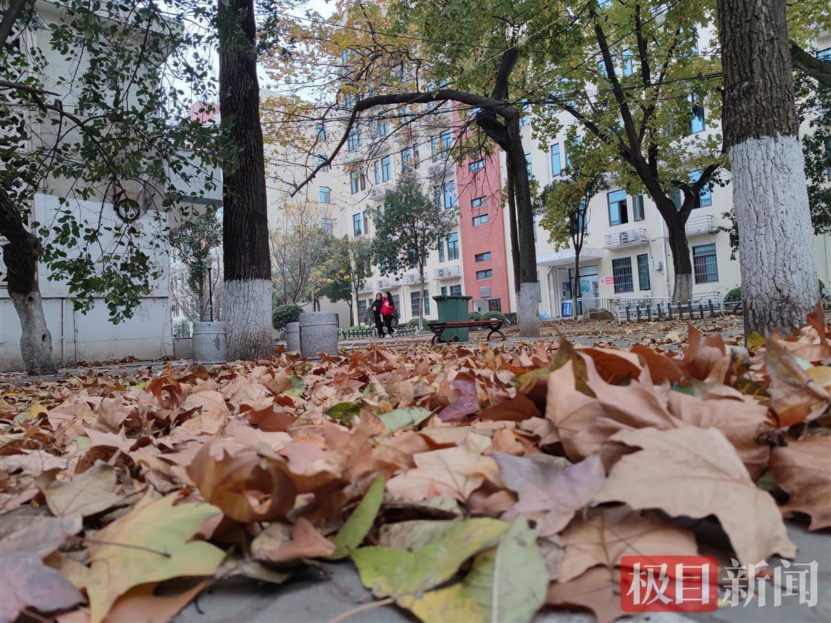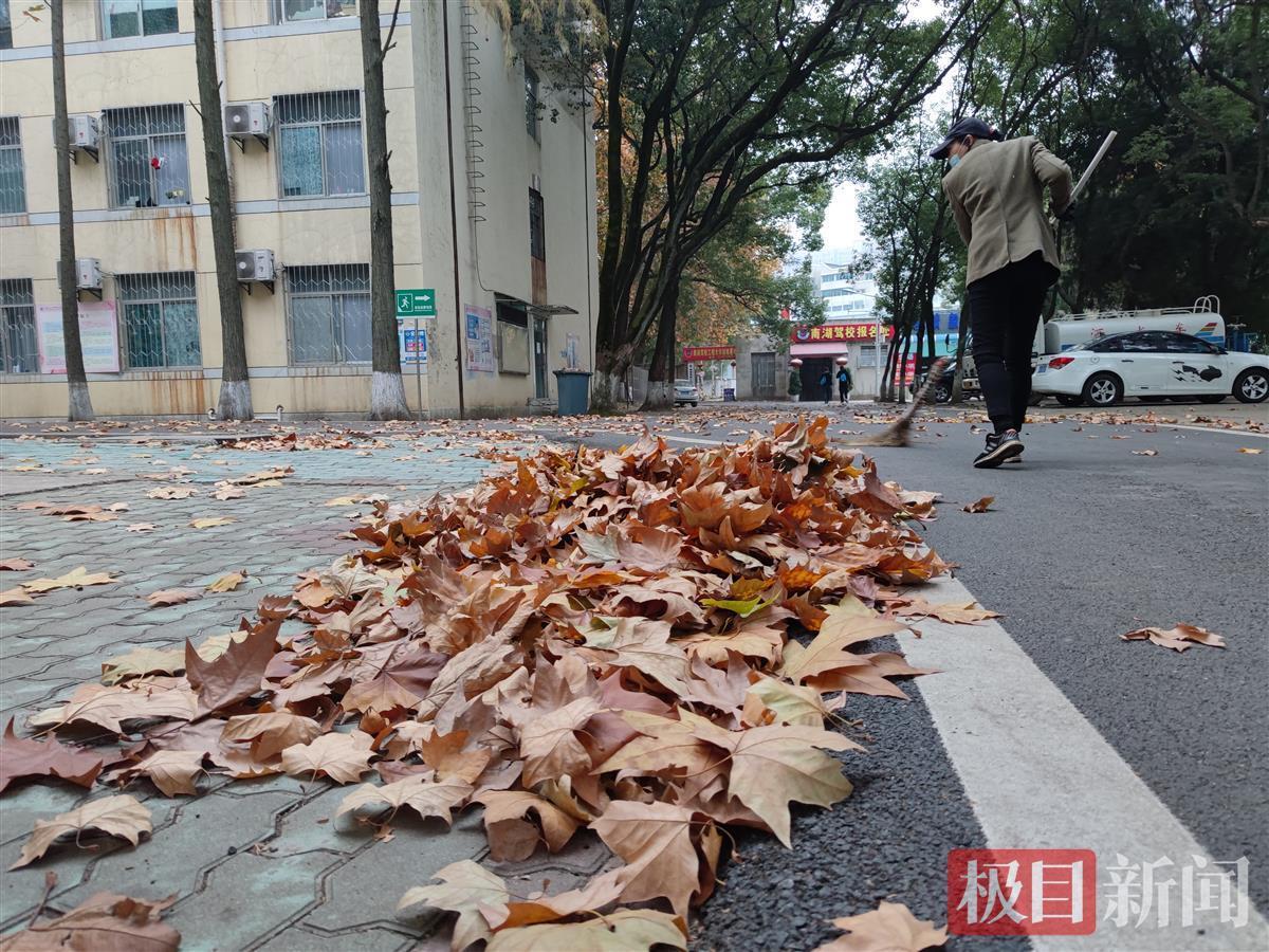 一夜呼啸的北风劲吹江城,11月21日,三镇到处是随风飘落的枯黄树叶。