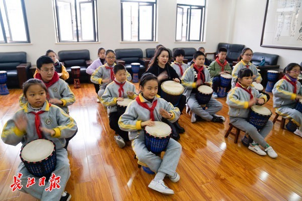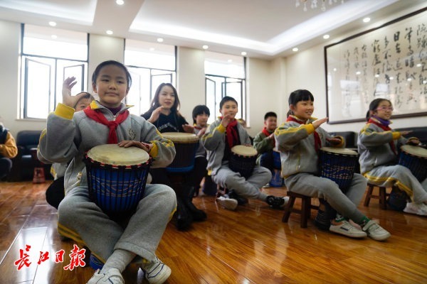 除了非遗类课程,学校的手鼓、舞蹈等传统校级社团一直保留,还组建了管乐团,点燃了孩子们的艺术梦想。元旦时,这几个社团的孩子们将共同演绎一曲《萱草花》,展示他们的学习成果。