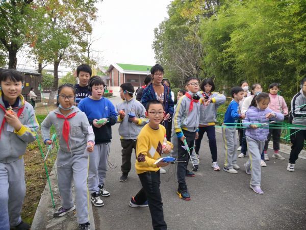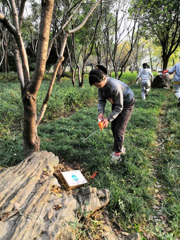 北湖小学学生在附近公园进行无线电测向活动。(通讯员聂鹏 摄)
