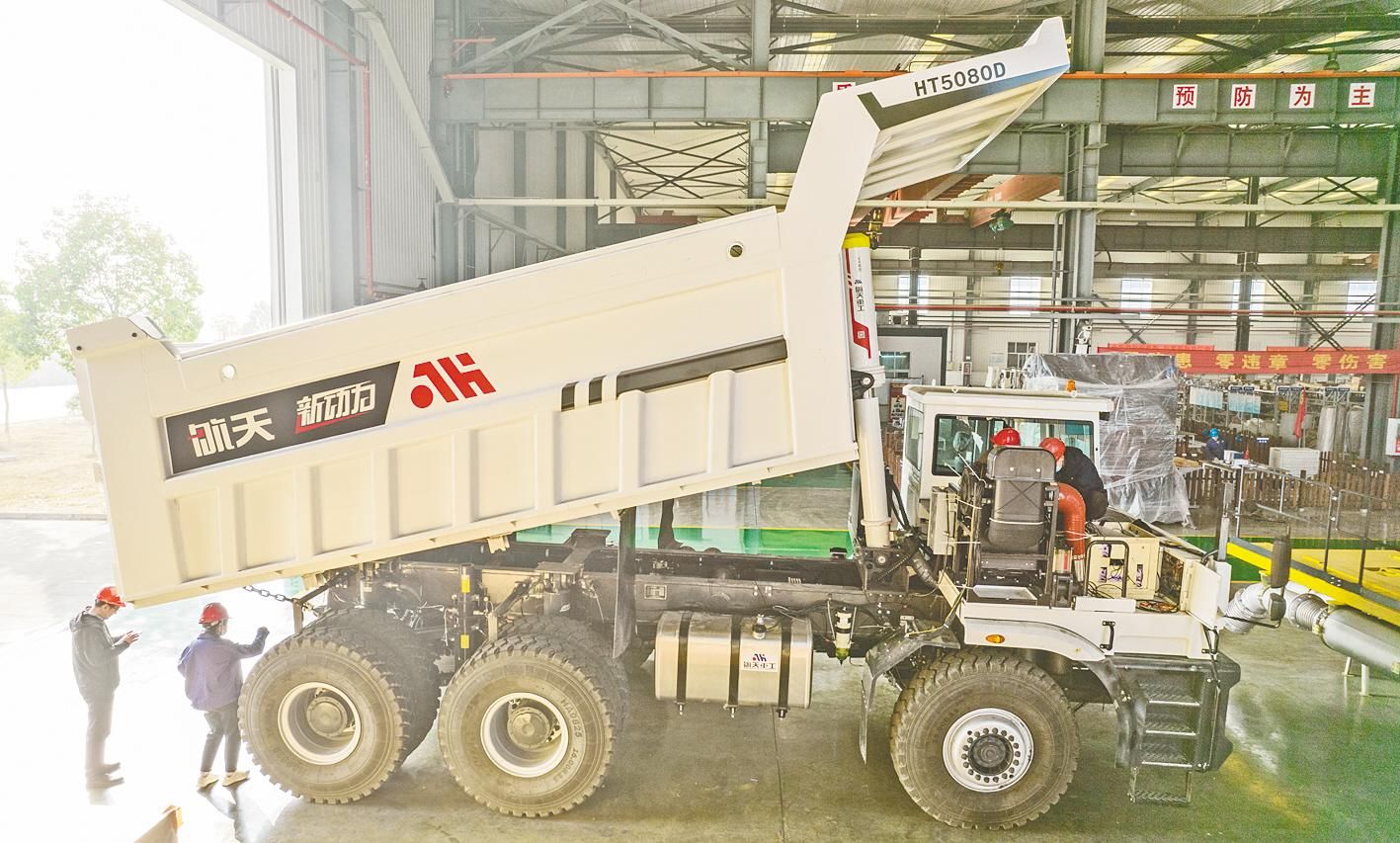 11月19日,鄂企三江航天重工技术人员正在对最近自主研发成功的矿用宽体自卸车进行检测。该车运用全焊接刚性车架、油气隔离式中后桥弹簧悬架等多项创新关键技术,整车承载达到80吨,载自比超过2.5,畅销市场并受到客户好评。今年,三江航天重工露天矿运输装备、井工矿新能源装备和新能源特种装备科研生产任务繁重,市场订单相对饱满。目前,公司上下正在开展“决战四季度,冲刺我当先”劳动竞赛,全力冲刺全年目标。