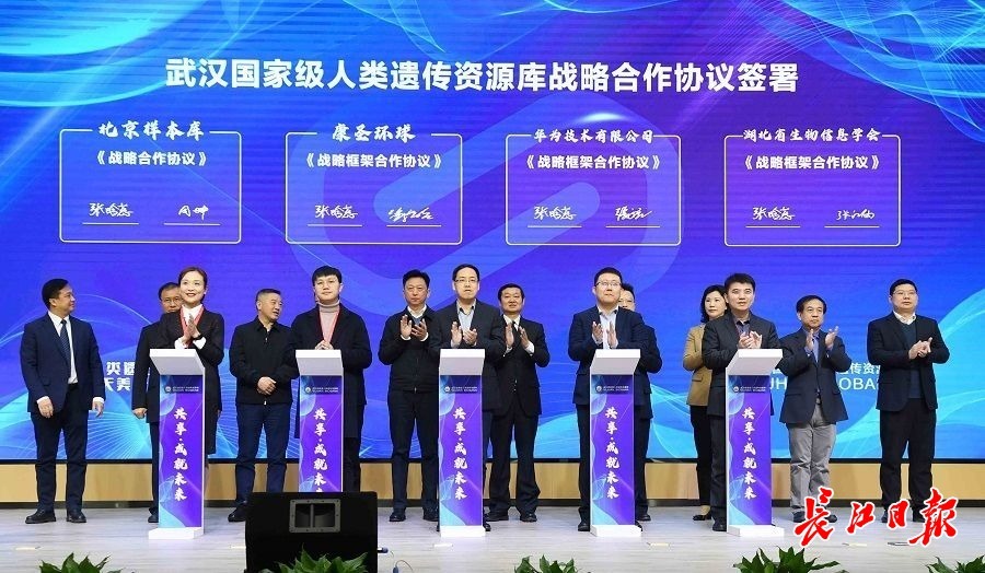 武汉国家级人类遗传资源库签署战略合作协议。长江日报记者高勇 摄