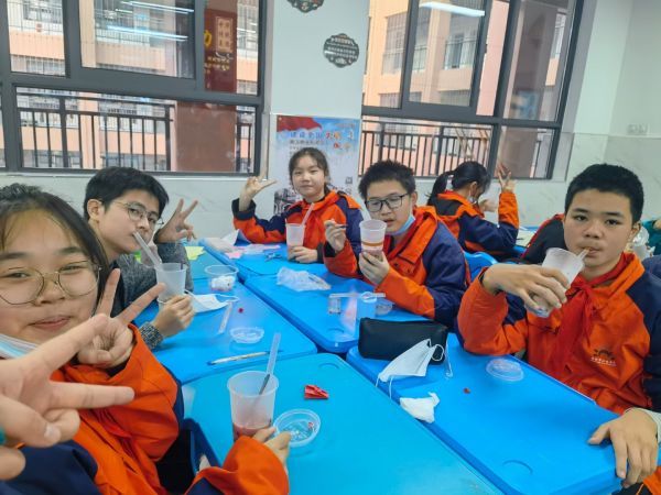 学生品尝自制奶茶。通讯员余轶 摄