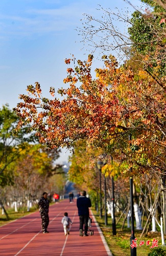 11月23日晨,金银湖绿道,不少市民沐浴着和煦的阳光散步、晨炼。 记者李永刚 摄