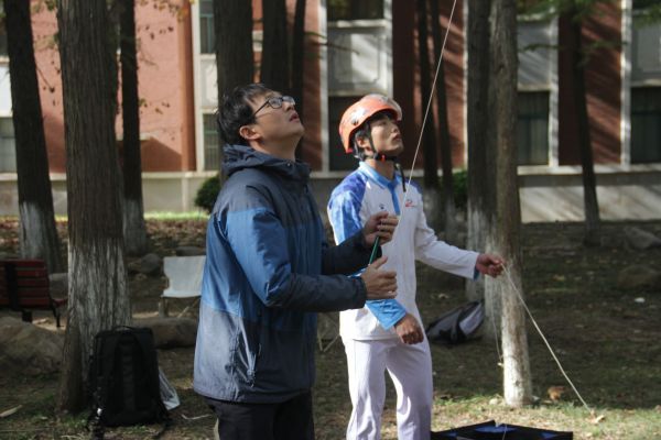 “攀树课”是学校休闲体育专业户外运动方向必修课,开设于2016年。学生们要在教练的带领下,分别采取单绳和双绳技术,对指定的大树进行攀爬。