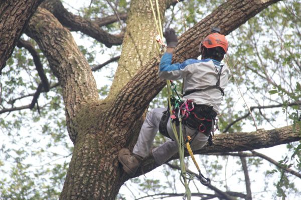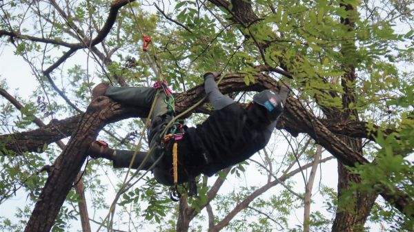 他介绍,攀树类似于攀岩,课程内容包括上升、下降、走枝、飞枝等动作的训练,测评树木周围环境的教学,远比想象中丰富专业得多。从识别什么样的树可以爬、判断主绳要挂在哪一条枝上,到动手做重力测试、学习组装攀树工具,都是专业性极高、挑战性极大的任务,对学生解决问题的能力是极大锻炼。