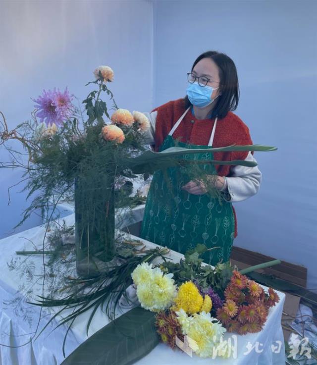 花艺选手陈紫嫣此次参赛创作的作品共两年,分别为“菊韵麻城”、“幸福人家”,一件体现传统插花工艺,一件富有现代气息。陈紫嫣2019年从湖北经济学院电商专业毕业后,因为人个爱好,创立了璞拾花艺工作室。