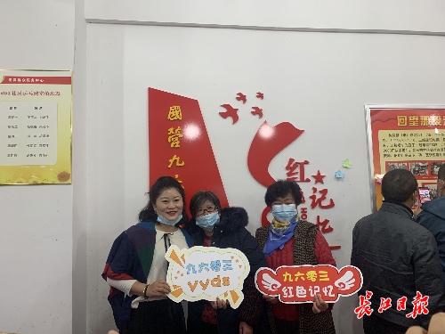 9603厂社区居民在历史照片前打卡留念。 长江日报记者汪峥 摄