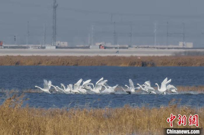 11月23日,一群天鹅在天津北大港湿地水面滑行。 中新社记者 佟郁 摄