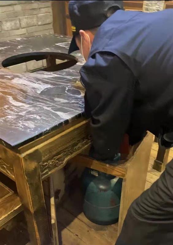 “每张桌子上面一颗‘定时炸弹’。”洪山区城管执法局燃管站负责人严国锋当场拿出手机扫描钢瓶上的二维码,信息显示,该店的瓶装气由正规燃气企业配送。“气是正规气,但使用的前提条件不符合标准。”