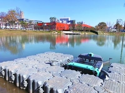 “这是我们最新上岗的湖面清道夫——智慧无人清洁船。”江汉区常青公园管理中心负责人连建辉告诉记者,这艘智慧无人清洁船是公园“5G智慧”的一个体现。通过船身上的传感装置,无人船能自动扫描、收集水面漂浮的杂物和垃圾,当垃圾装满或电力不足时,它还能自动返航停靠码头。