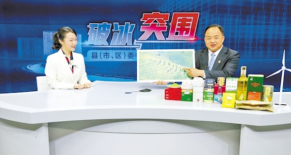 11月20日,大悟县委书记余海群带着展品,来到湖北日报5G演播室。