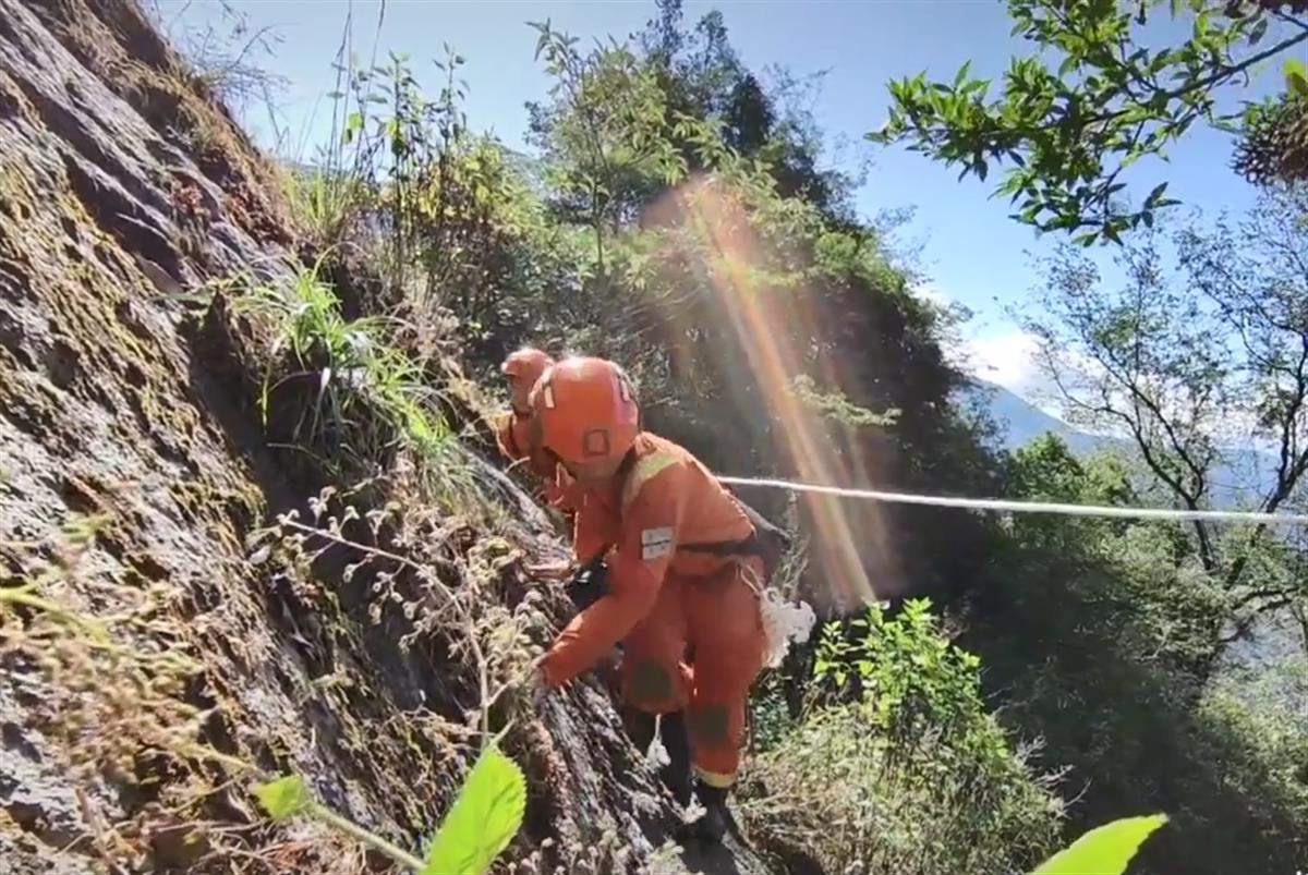 记者了解到,此次上山搜救,很多消防员都身背至少二十斤的背包,在茫茫大山中开展工作,而哀牢山山高路险,救援人员十分不易。