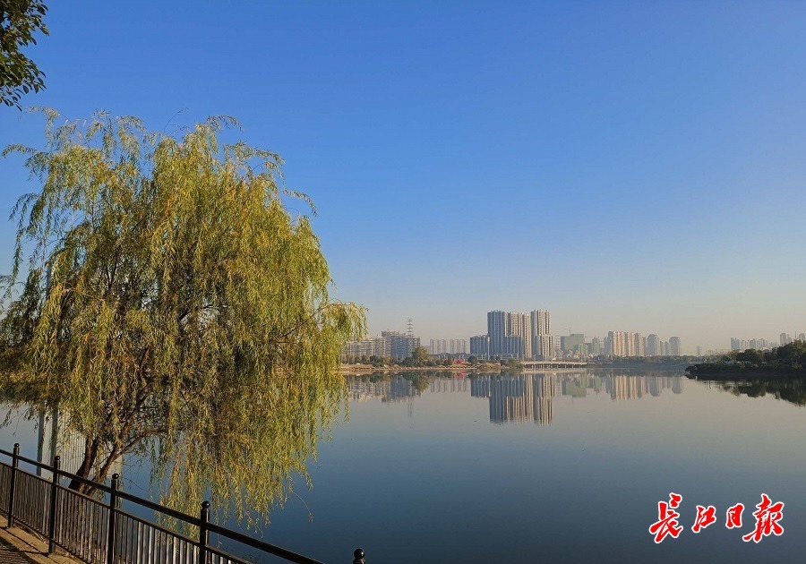 长江日报大武汉客户端11月25日讯 11月25日上午,金银湖银湖湖面,一层薄雾升腾,在蓝天和碧湖之间若隐若现。附近的居民在阳光下沿着湖边绿道跑步、骑行。(长江日报记者李永刚 摄影报道)