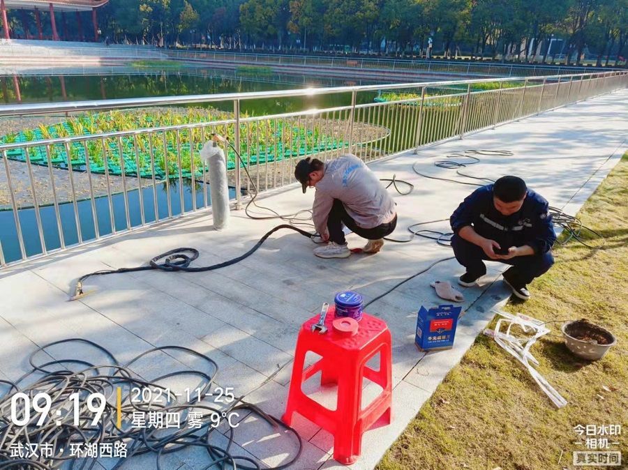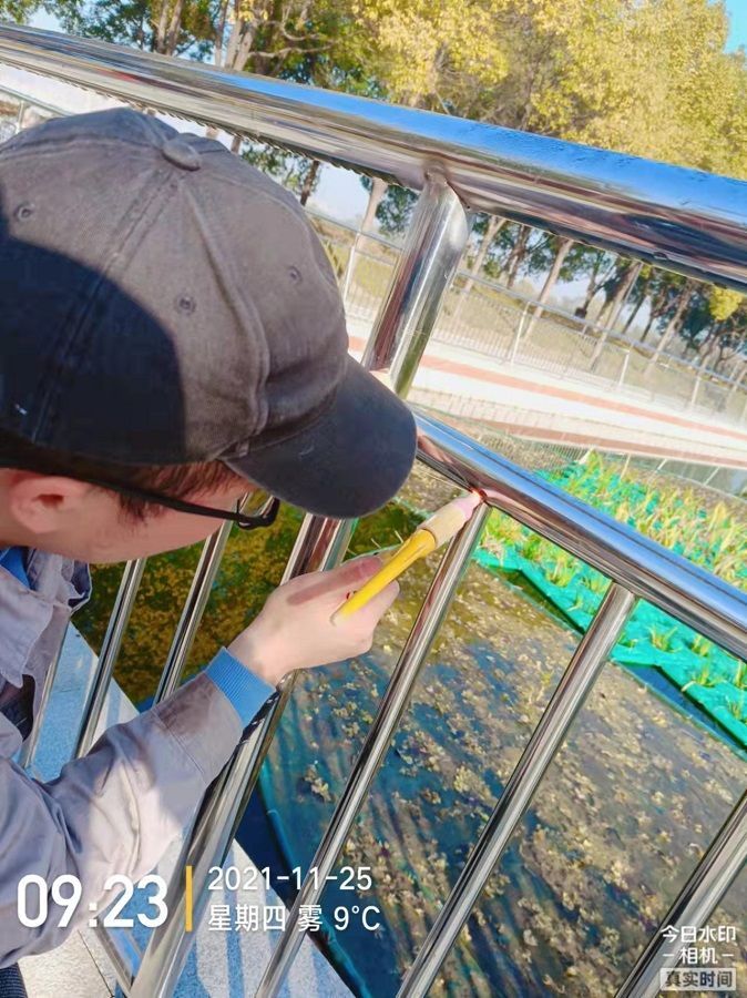 长江日报大武汉客户端11月25日讯(记者尹勤兵)东西湖区金银湖环湖西路的临湖绿道,一大型水池多处栏杆焊接不牢,游园居民不敢倚靠。11月23日,武汉城市留言板曝光此事后,施工单位及时派人整改加固。