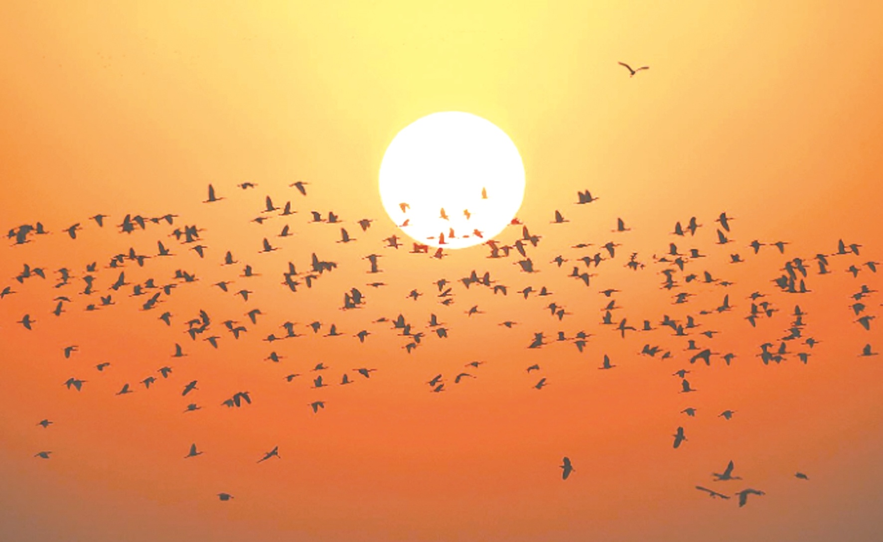 阳新县网湖湿地保护区五爪咀保护站附近,越冬的候鸟翩跹起舞。 (薛婷 摄)