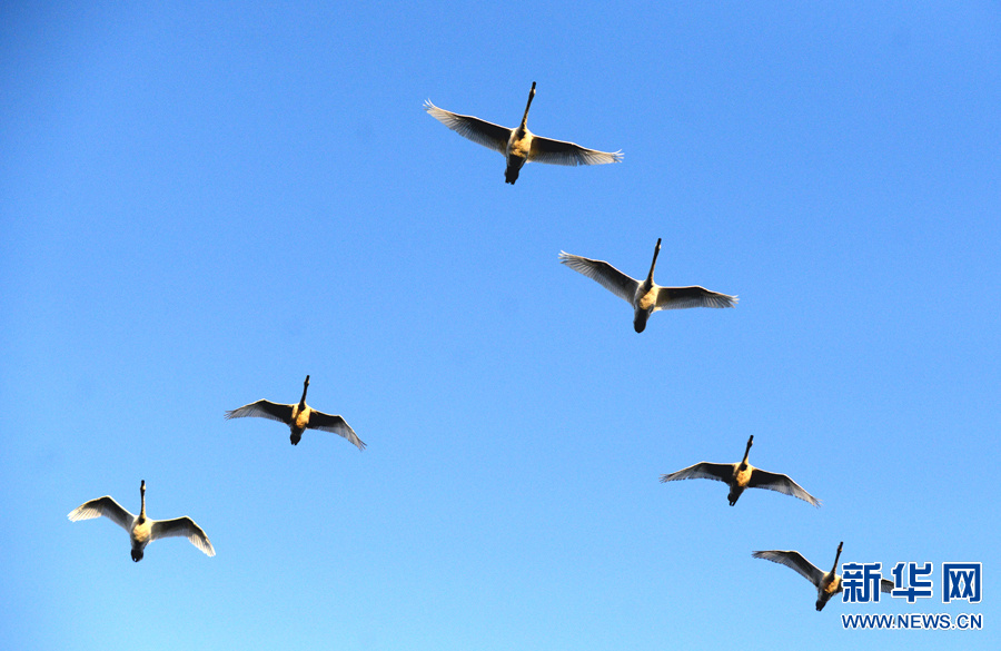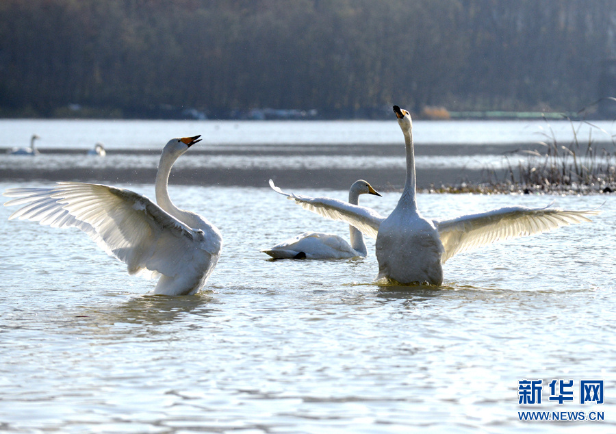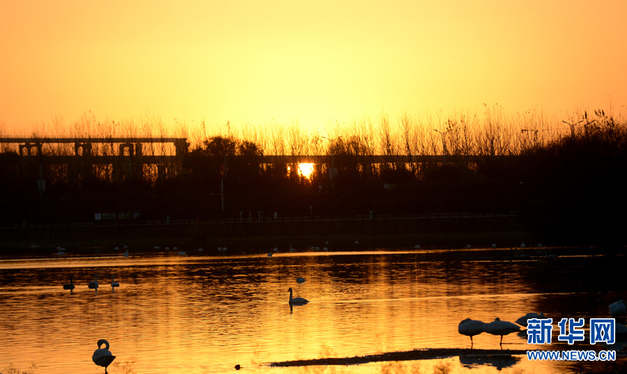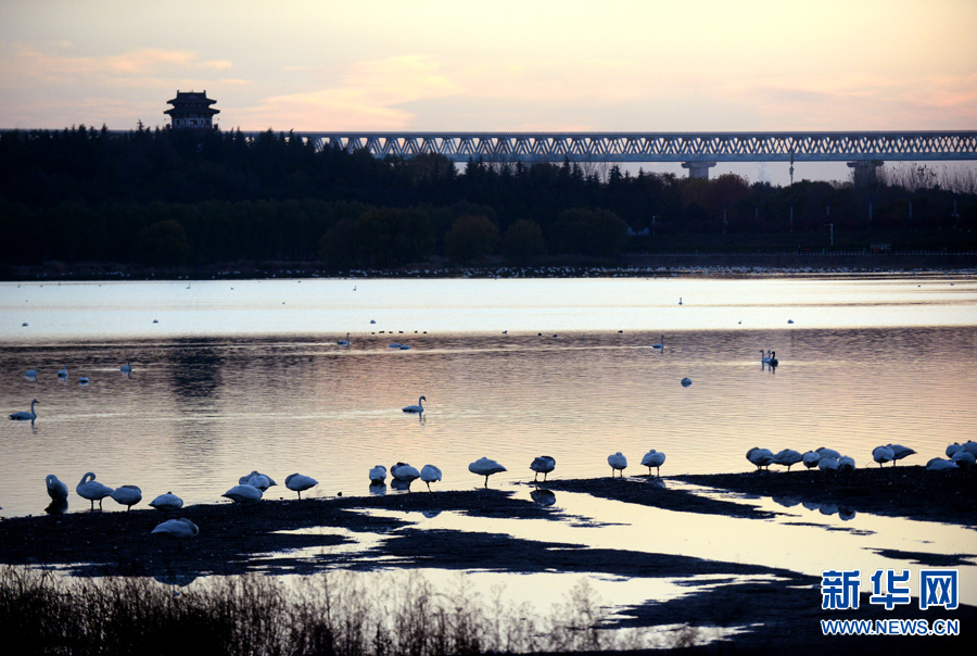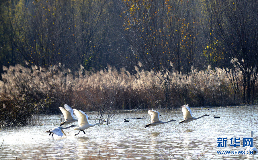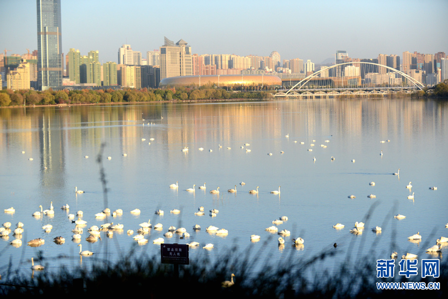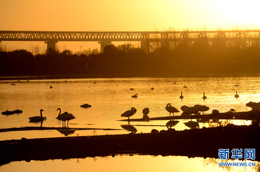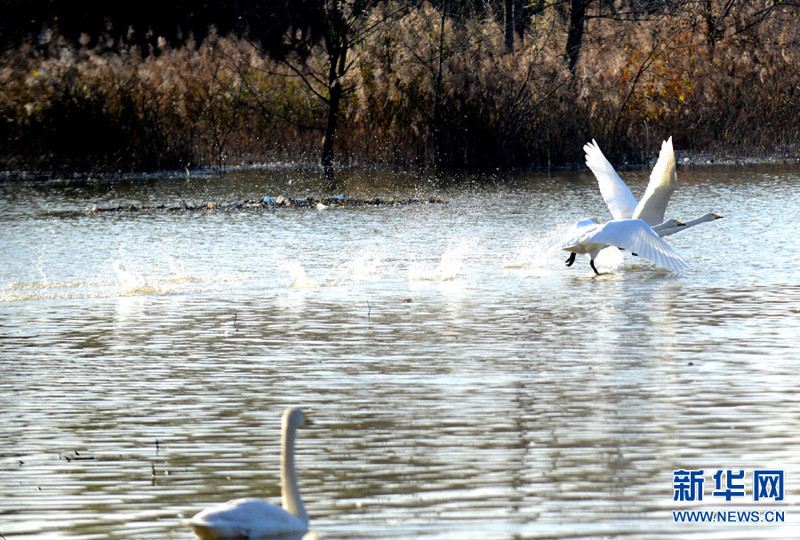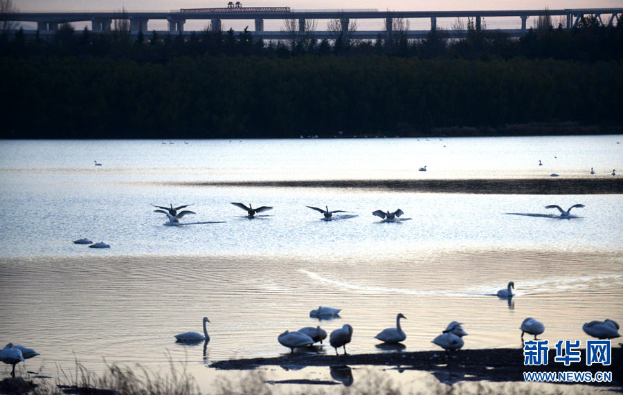 据了解,三门峡市享有“天鹅之城”的美誉。近年来,该市不断加大投入,黄河湿地生态环境得到较大改善,吸引更多的白天鹅来此栖息越冬。新华网发(王克伟 摄)