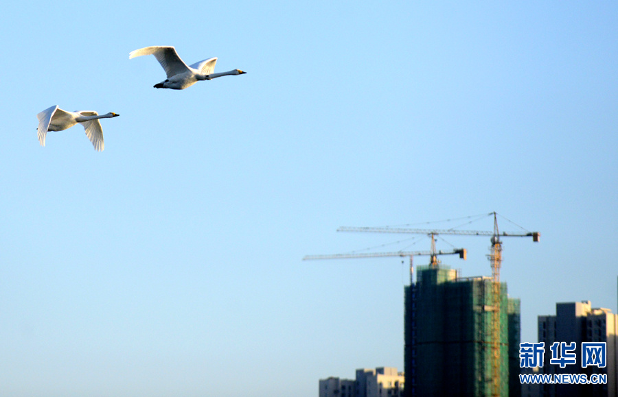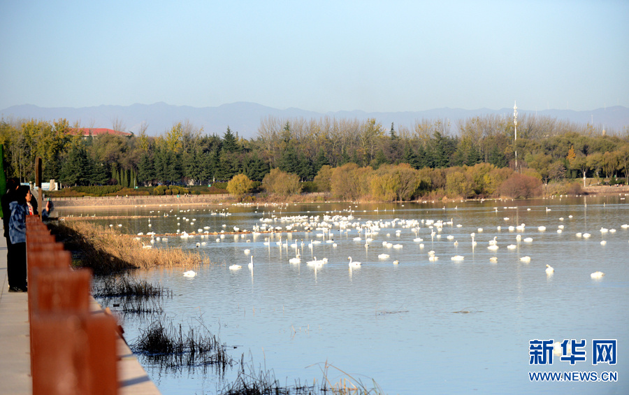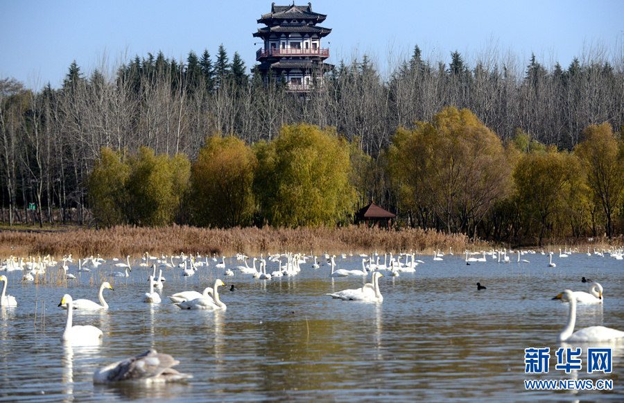 近日,河南省三门峡市天鹅湖国家城市湿地公园迎来大批栖息越冬的白天鹅。