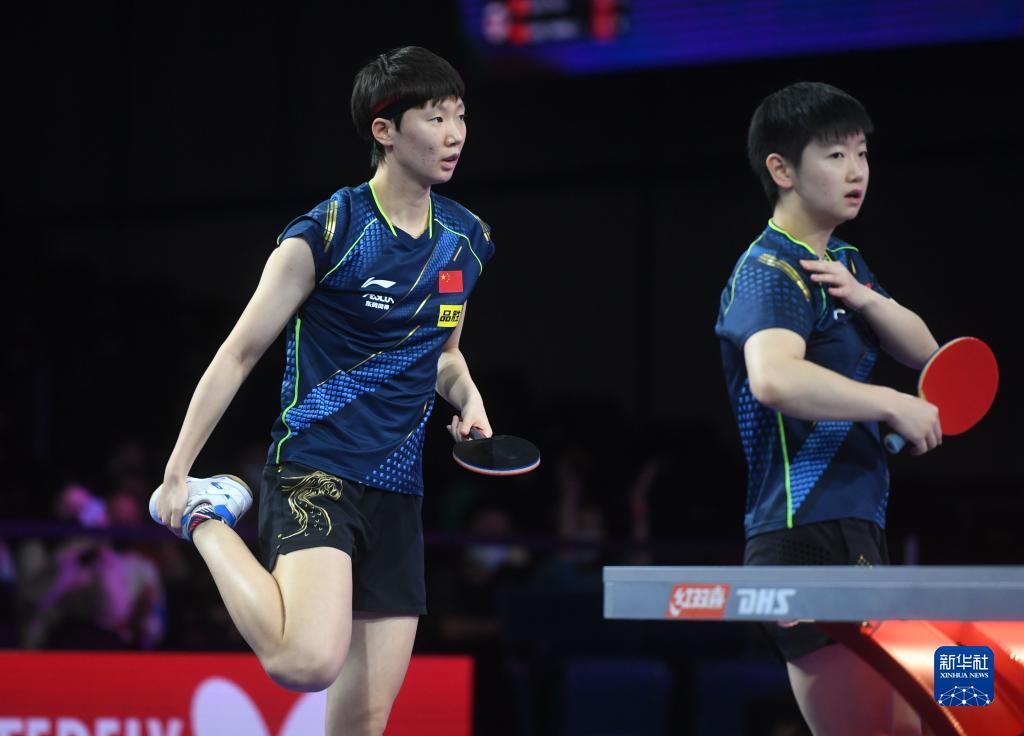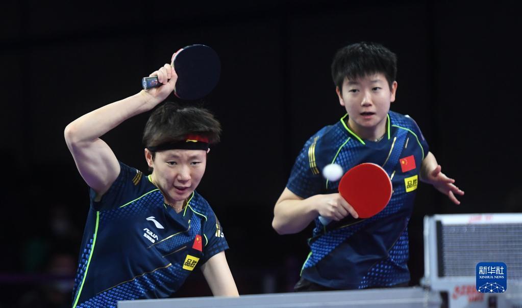 当日,在美国休斯敦进行的2021世界乒乓球锦标赛女子双打第二轮比赛中,中国组合王曼昱/孙颖莎以3比0战胜中国香港组合吴颖岚/朱成竹,晋级下一轮。