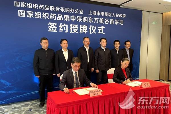 东方网记者奚亮11月26日报道:25日,国家组织药品联合采购办公室与上海市奉贤区人民政府联合举办的国家药品集中采购“东方美谷首采地”签约揭牌仪式在奉贤举行。
