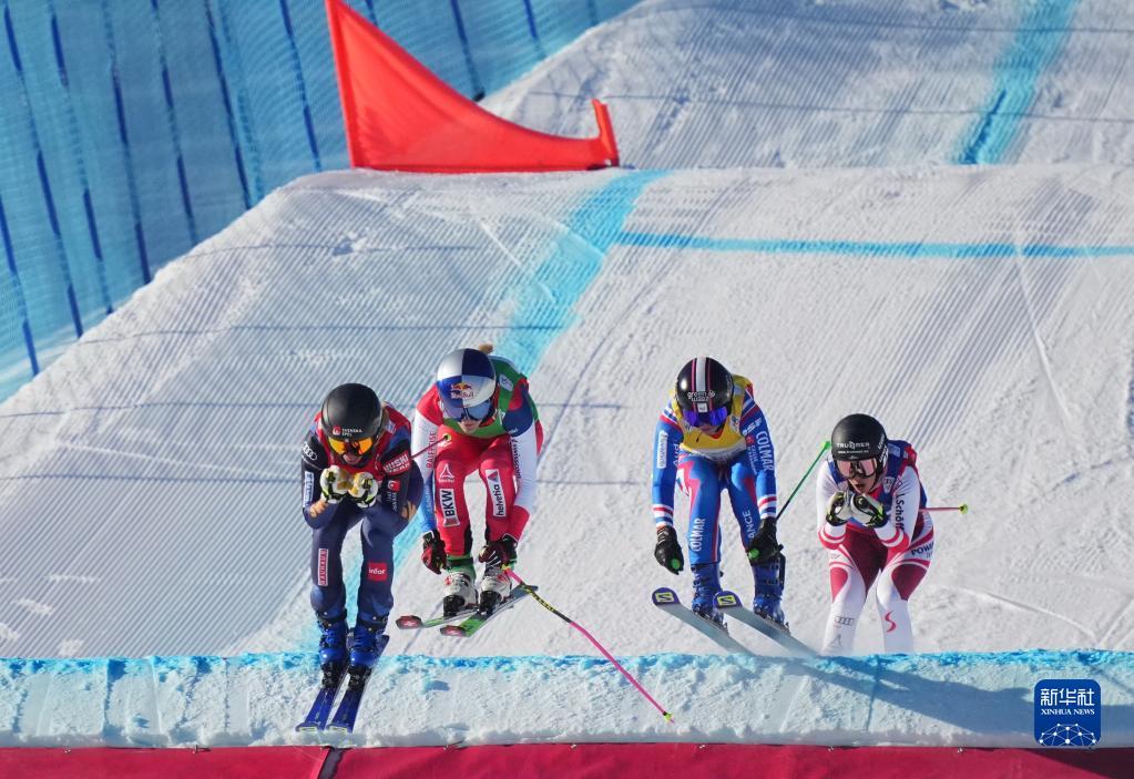 11月27日,瑞典选手桑德拉·奈斯伦德(左一)、瑞士选手芬妮·史密斯(左二)和法国选手贝尔热·萨巴泰尔(右二)在女子组比赛中。