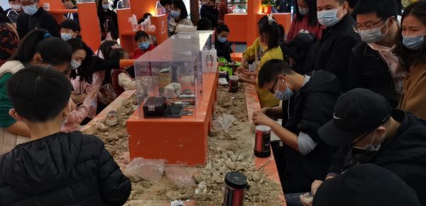 “妈妈,我要自己来挖宝贝!”年仅6岁的陈梓熙小朋友挑选到自己心仪的盲盒,便直接到手工区开始考古挖宝工作。展馆中间,不仅展示热门盲盒样品,还在四周设置了手工区。盲盒里,洛阳铲、小刷子、镊子等工具一应俱全。陈梓熙将土块一小铲一小铲撬下来,刷子掸去“宝贝”上的泥灰。