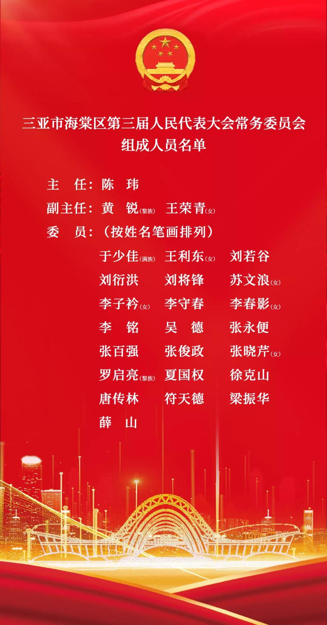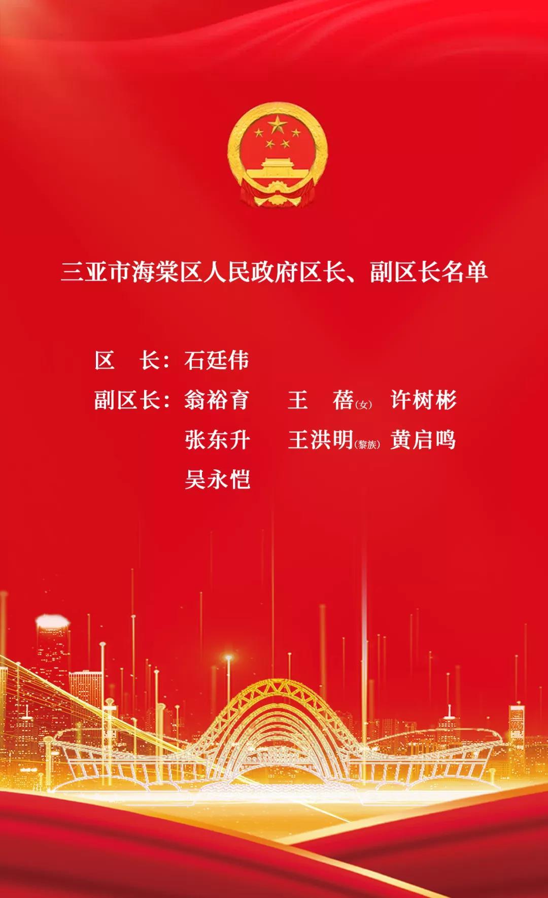 新海南客户端、南海网、南国都市报11月28日消息(记者 林师堂)11月28日,三亚市海棠区第三届人民代表大会第一次会议闭幕,新一届海棠区人大常委会、区政府领导班子、区监委主任产生。