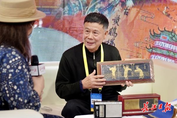 长江日报大武汉客户端讯(记者周满珍)“非遗”是首届中国(武汉)文化旅游博览会的热门,不少市民热衷逛“非遗”展位,淘相关文创产品。长江日报展厅内的“武汉非遗,一直精彩”直播活动也吸引不少市民驻足,直播3天吸引超百万网友观看。28日,木兰传说传承人叶蔚璋、黄鹤楼传说传承人章普林做客直播间,分享“非遗”魅力。