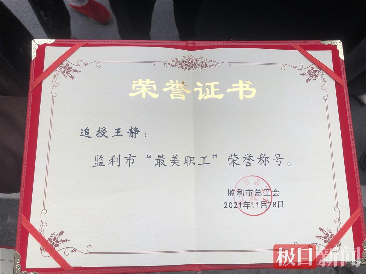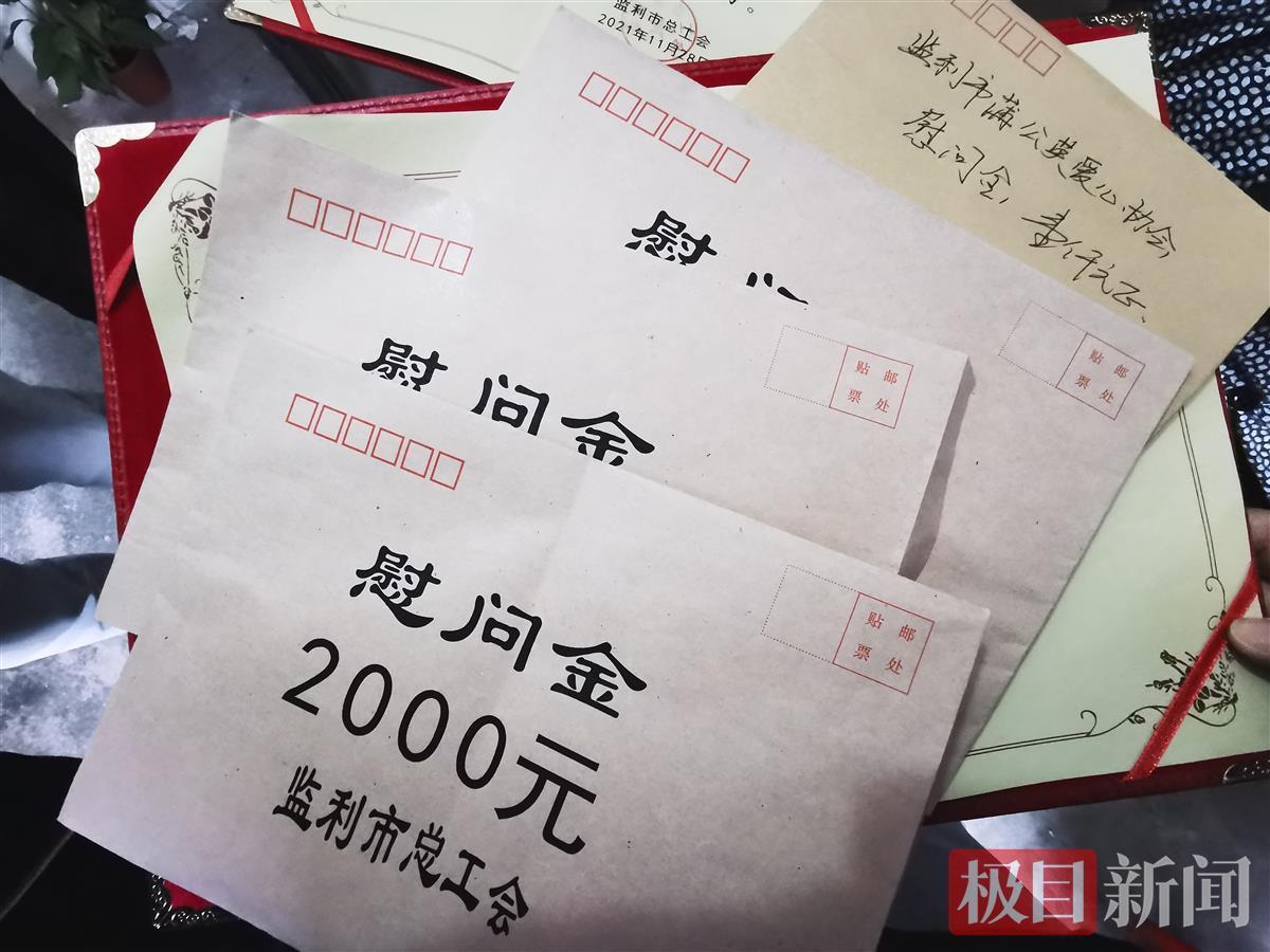 当天下午,极目新闻记者在王静的家中看到,监利市工会、团委、妇联等部门和爱心组织等先后来到王静家中慰问,并送来慰问金和证书。