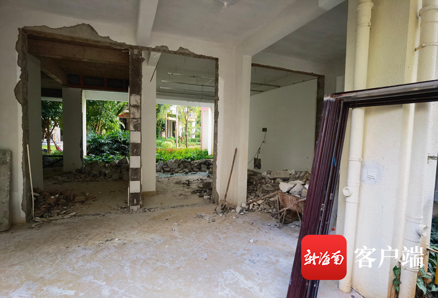 琼海博鳌椰风海岸小区17#楼一层架空层违法建设的物业人员办公室和19#楼一层架空层的物业经理办公室、小会议室等已拆除完毕。记者 姜飞 摄