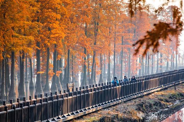 涨渡湖湿地自然保护区是长江中下游第一个江湖连通自然保护区,也是亚太地区珍稀候鸟迁徙中转通道。近年来,当地不断加强涨渡湖湿地生态修复与保护,三年来累计新建池杉林基地350亩,与原有的水上森林连成一片,逐渐形成了一个规模合理的人工湿地生态系统。(湖北日报全媒记者 薛婷 通讯员 胡长发 摄)