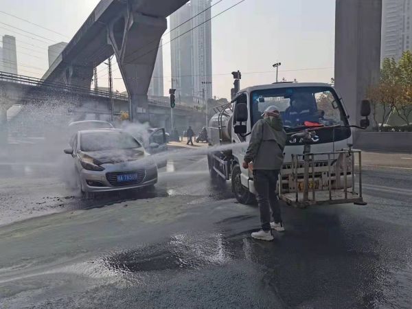 据了解,驾驶环卫水车灭火的驾驶员是硚口环卫有限公司项目二部质检员刘顺。当时他和同事陈文祥正在解放大道正常作业,接到工作群里消息说有路面发生火灾,距离自己不到200米,他当即第一时间开车奔赴现场。到达现场时,车辆冒着滚滚白烟,车头燃烧已然猛烈。