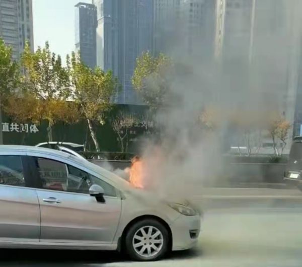 一私家车突然自燃。 通讯员任雅麟 摄