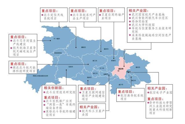 截至2020年,湖北省北斗产业相关企业共计700余家,北斗卫星导航核心产业及关联产业总规模达500亿元。其中与北斗卫星导航技术研发和应用直接相关的芯片、板卡、算法、软件、导航数据、终端设备、基础设施等核心产值约150亿元,由北斗应用和服务所衍生带动的关联产值约350亿元。