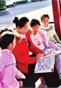 课余时分,刘丽丽老师陪学生们一起开展“阳光阅读”。