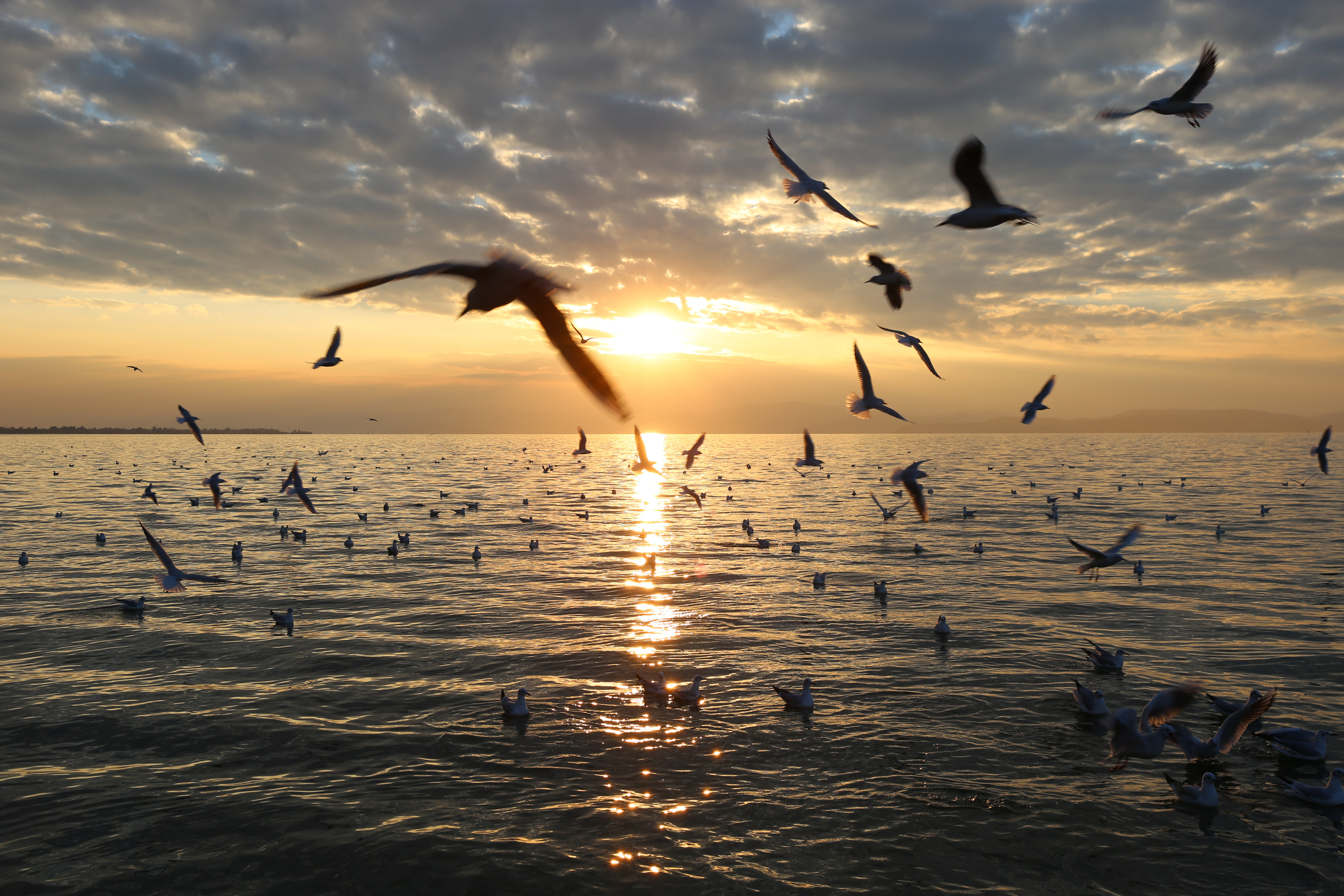 11月30日,滇池水面上飞翔的海鸥。(中国日报记者 武晓慧 摄)