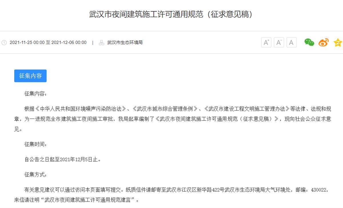 夜间施工扰民,需规范审批管理且合理控制。12月1日,极目新闻记者获悉,《武汉市夜间建筑施工许可通用规范(征求意见稿)》(下简称意见稿)正在进行民意征集。根据意见稿内容,申请单位应当至少提前3个工作日提交材料,向建设项目所在地区的区行政审批部门办理审批手续。
