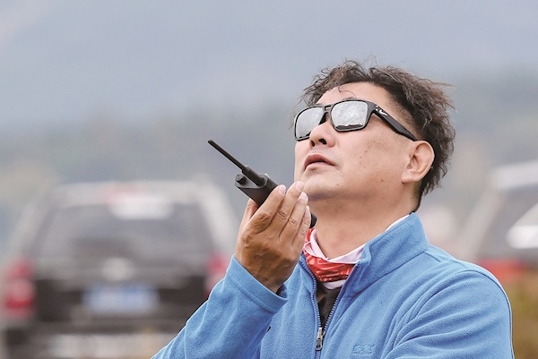 降落场上,一名戴着墨镜的男子手持对讲机,不停仰望天空,引导8名学员进行滑翔伞伞降飞行训练。他就是内地高校开设滑翔伞课程第一人、中国地质大学(武汉)体育学院邓焰峰副教授。
