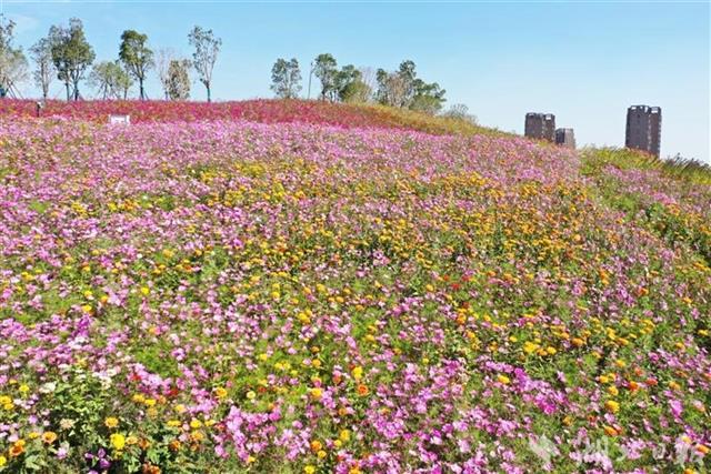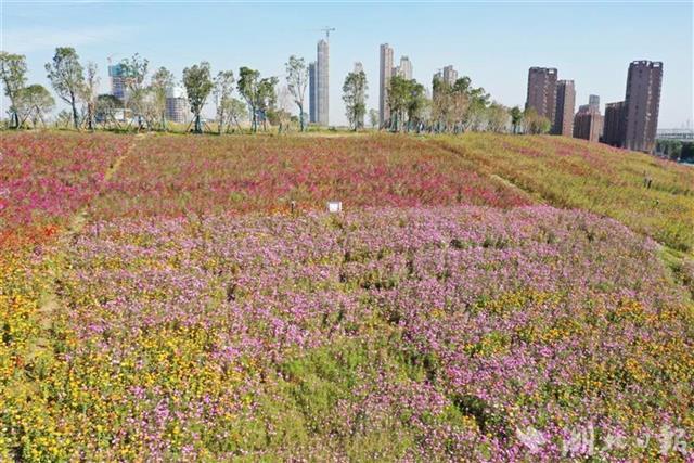 不过,在两大建设环节衔接的间隙期,该项目的大量裸土影响了欢乐大道两侧的窗口形象。武汉市政集团从文明施工的角度出发,秉承“建设一个项目,打造一个家园”的理念,于今年6月、9月在建设工地播撒了50万株波斯菊、10万株醉蝶花花籽和250斤草籽,种植面积达到4.8万平方米,形成了如今的花海景观。“播撒的都是经济实惠的野花种子,不需要太大的成本维护。”