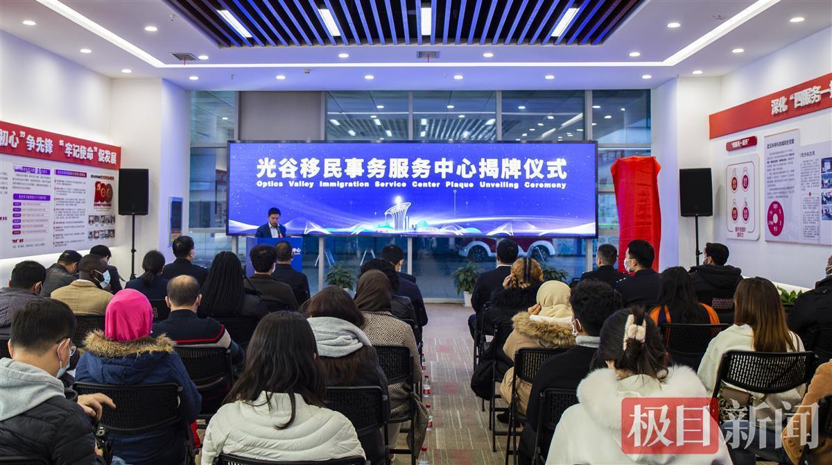 12月2日,光谷移民事务服务中心在武汉未来科技城揭牌。这是武汉东湖高新区首家集政务服务、信息服务、政策咨询以及法律服务和文化融入等于一体的外籍高层次人才服务平台。园区外籍人才在公司门口就能办理多种就业、生活等相关事项。