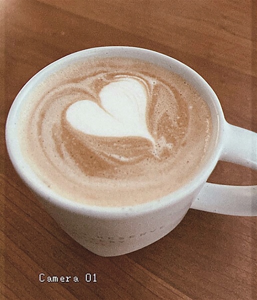向女士用咖啡机自制的咖啡拉花