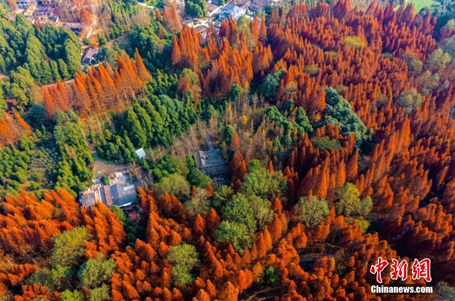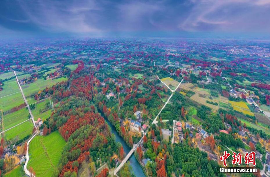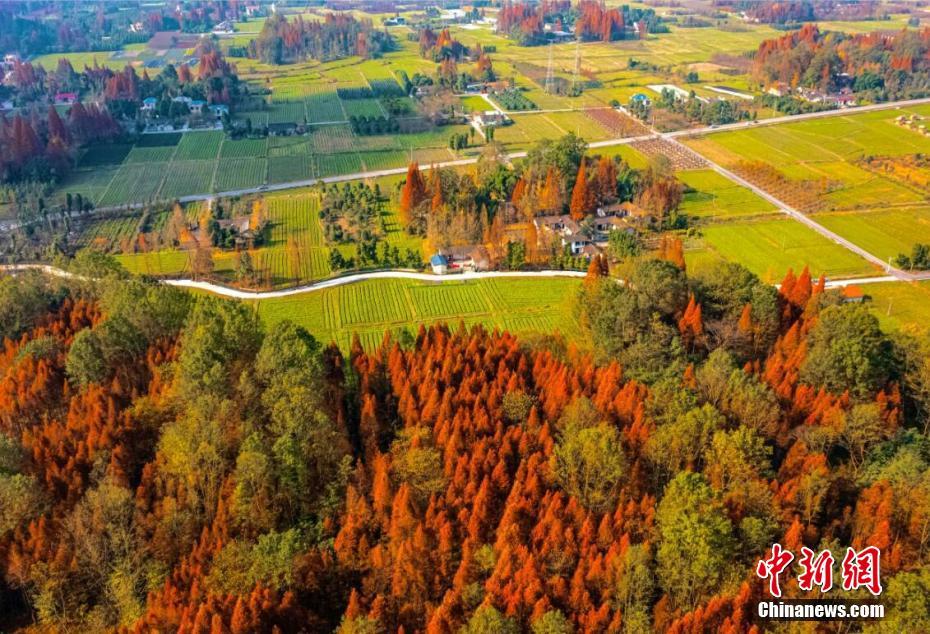 都江堰朱家湾林盘的水杉色彩斑斓,美不胜收。 都江堰市委宣传部供图