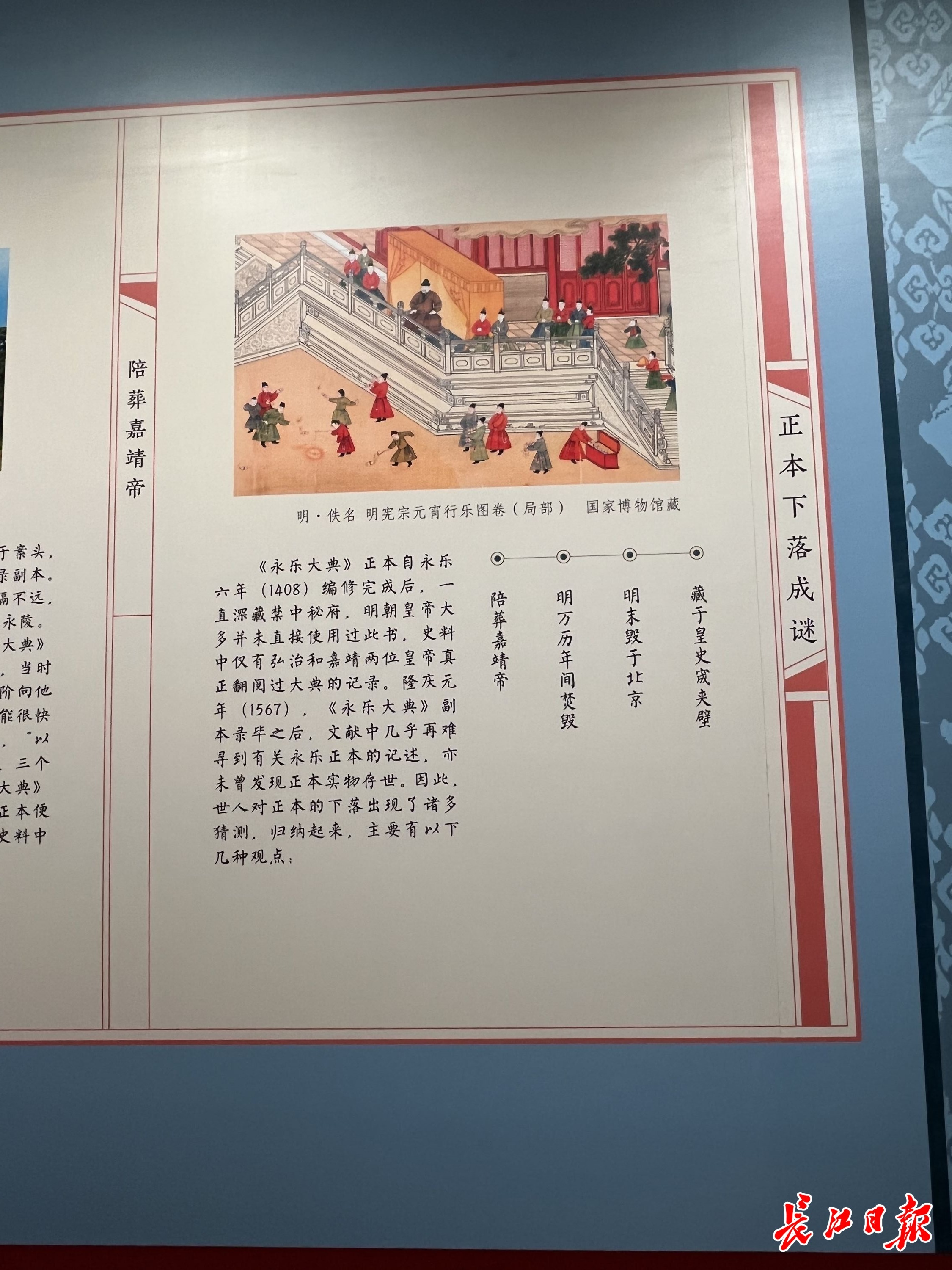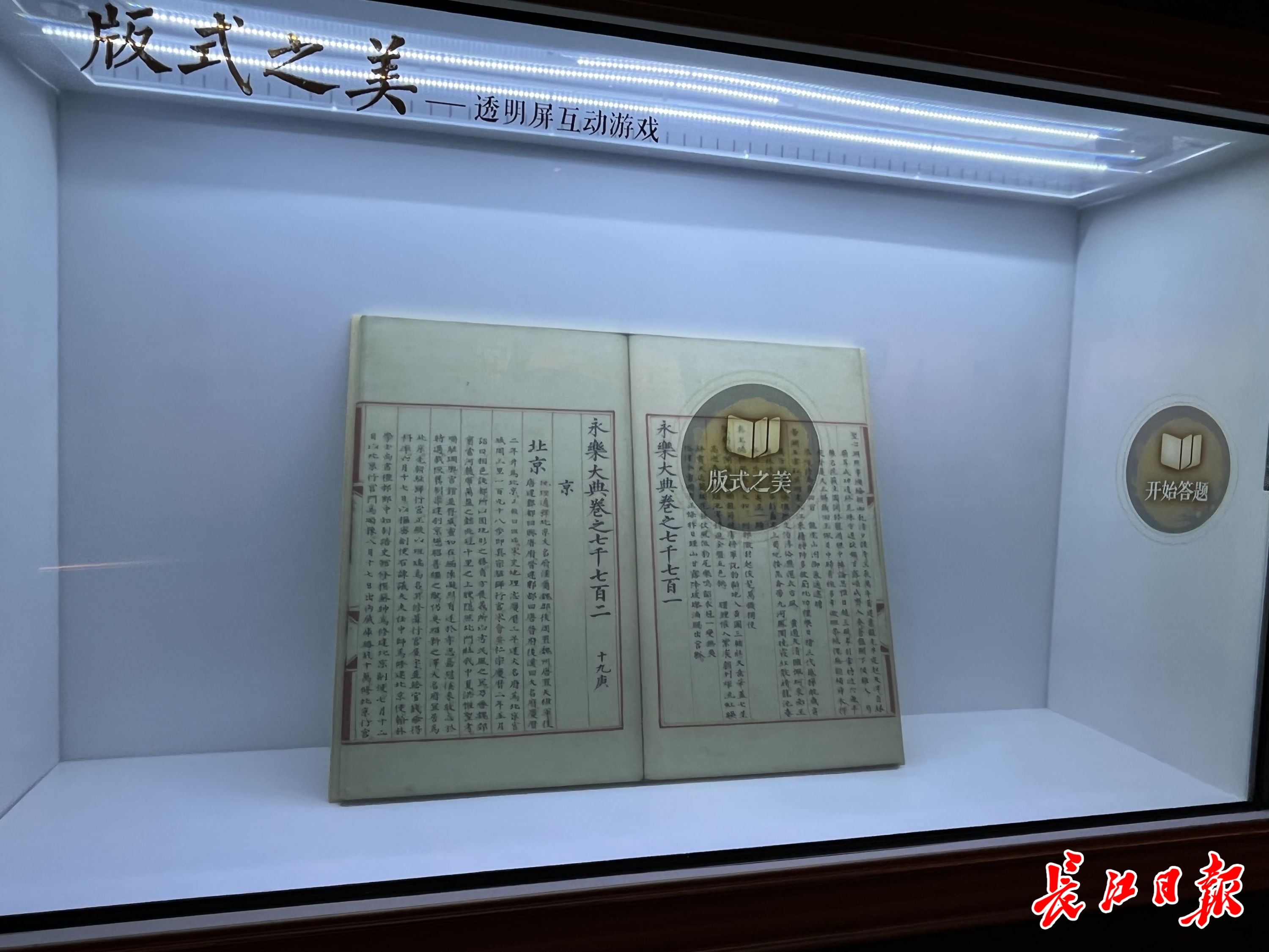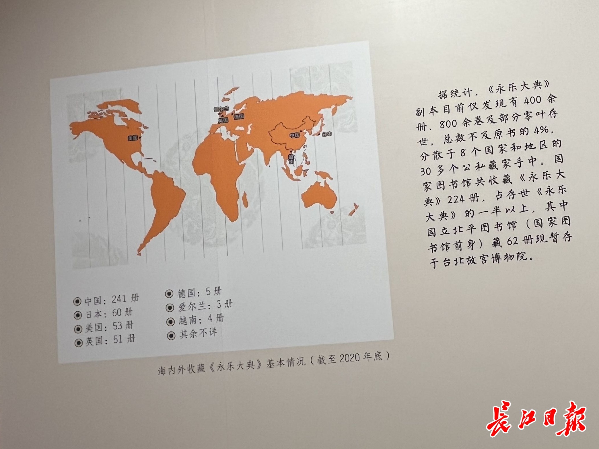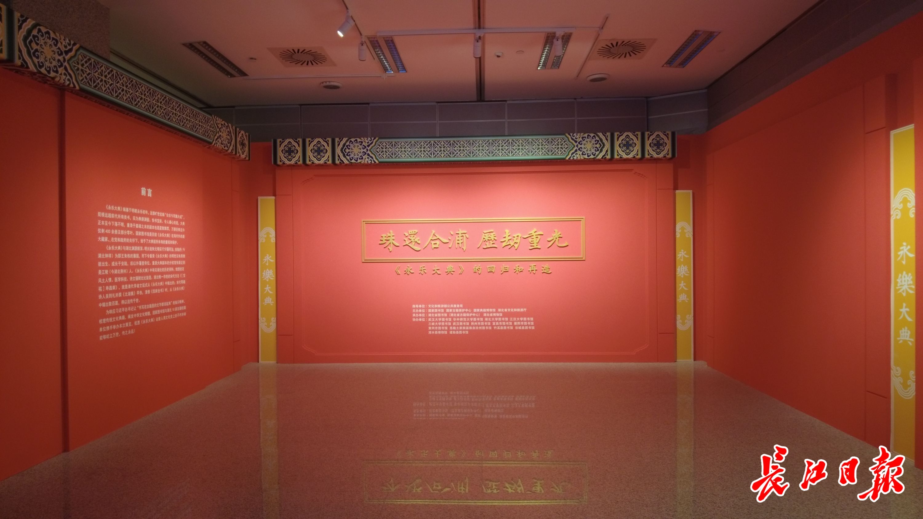 由国家图书馆、湖北省文化和旅游厅主办,湖北省图书馆、湖北省博物馆承办的“珠还合浦 历劫重光一《永乐大典》的回归和再造”湖北巡展,已在湖北省图书馆准备就绪。12月2日,省图邀请媒体提前探馆,长江日报记者现场看到展厅中介绍《永乐大典》的图文、视频资料分5个展览单元,已装置到位,就等《永乐大典》3册副本原件到来。